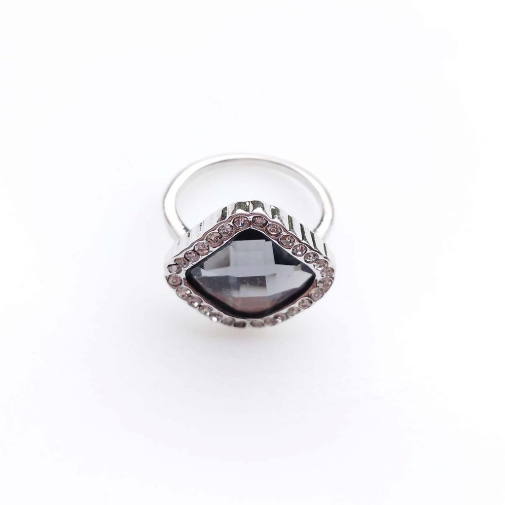 Un Anello dallo stile Classico e Intramontabile realizzato in Cristallo di Boemia e Bagnato in Oro Bianco 18k. Il Cristallo esposto alla Luce cambia Colore passando dal verde smeraldo al marrone, dal grigio al nero.