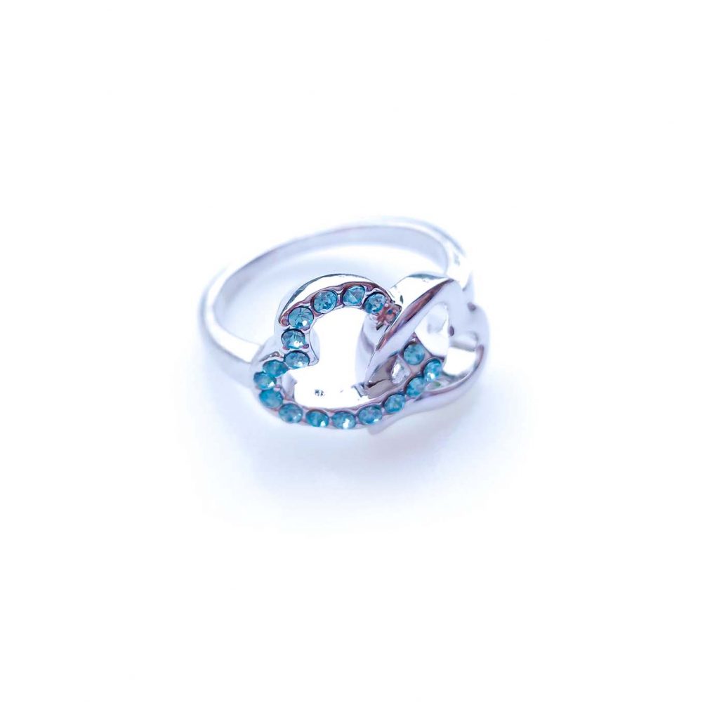 Anello Placcato Oro Bianco 18k con Cristallo Austriaco Azzurro Due Cuori si incontrano in un Anello pieno di Charme!