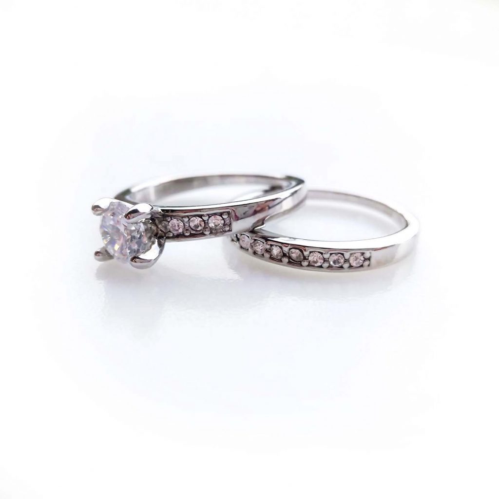 Set 2 Anelli Placcato Oro Bianco 18k. 1 Anello con Zirconi e Cristallo. 1 Anello Con Zirconi. La Classe e L'Eleganza a portata di Mano! ARTICOLO ANALLERGICO, SENZA NICHEL, SENZA PIOMBO