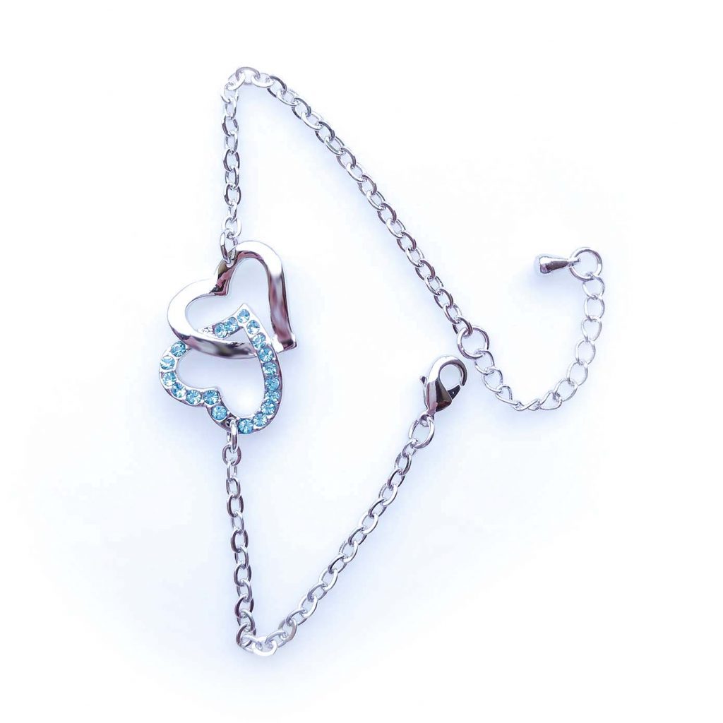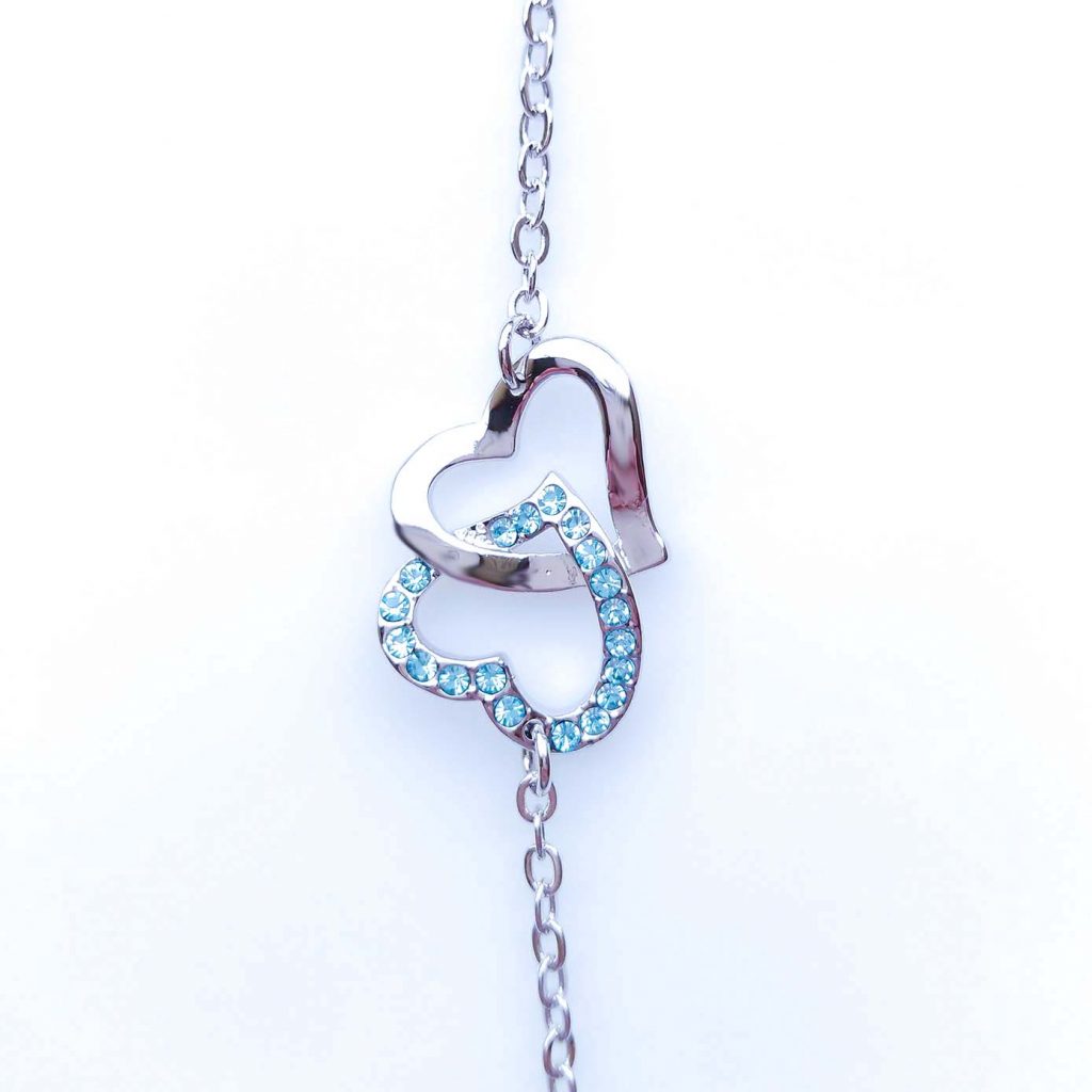 Collana Placcato Oro Bianco 18k con Cristallo Austriaco Azzurro Due Cuori si incontrano in un Anello pieno di Charme!