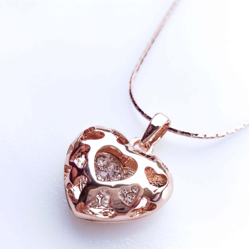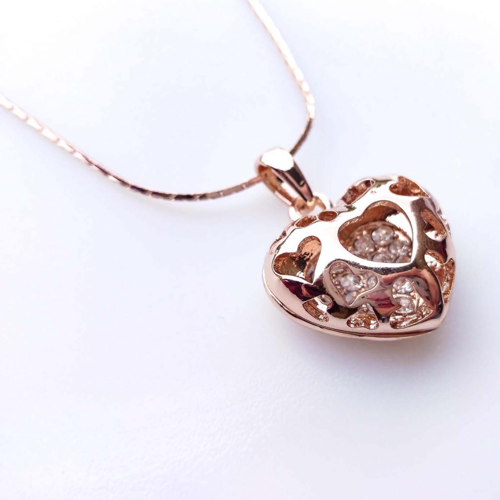 Collana Cuore Bagnata in Oro Rosa 18k con piccoli zirconi luminosi. ♡ Un Cuore batte per circondarti di Amore♡ Ciondolo 1,5 cm x 1,5 cm