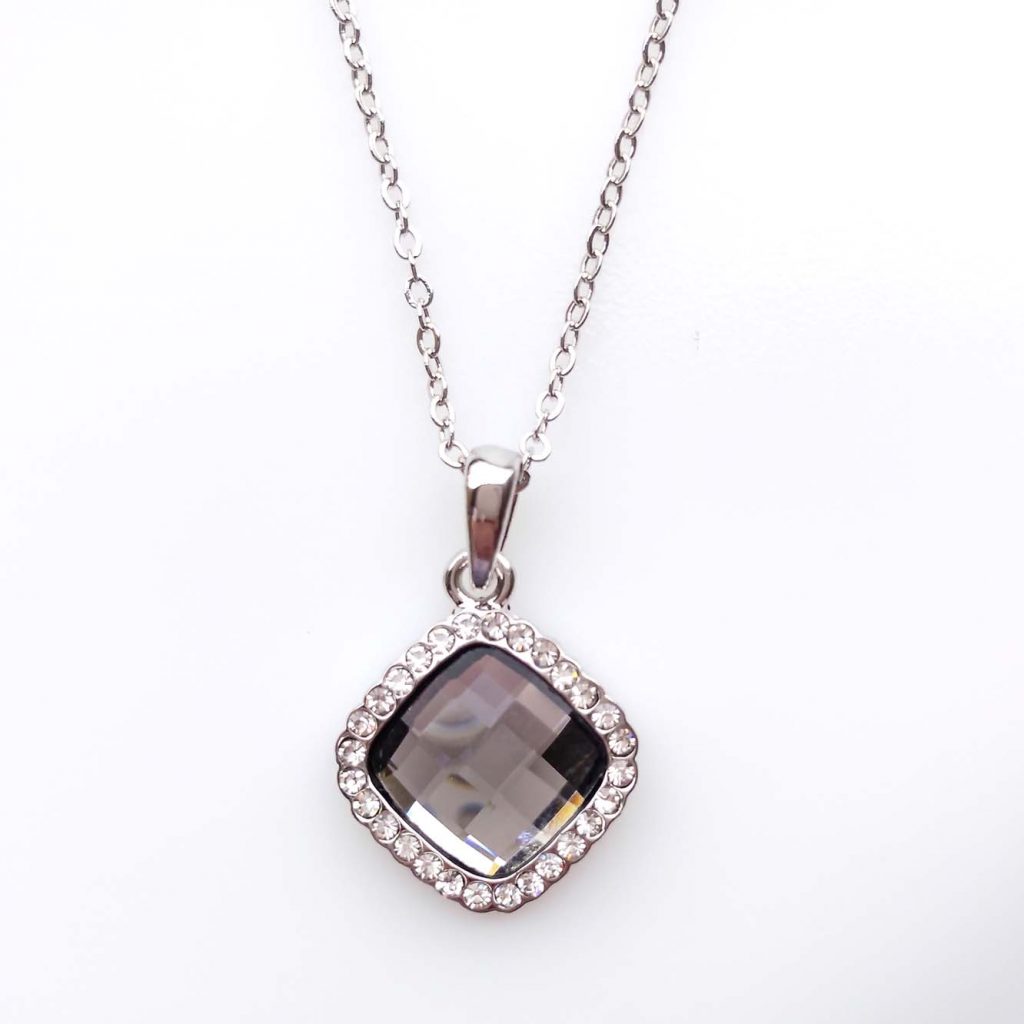 Collana dallo stile Classico e Intramontabile realizzati in Cristallo di Boemia e Bagnati in Oro Bianco 18k. Il Cristallo esposto alla Luce cambia Colore passando dal verde smeraldo al marrone, dal grigio al nero.