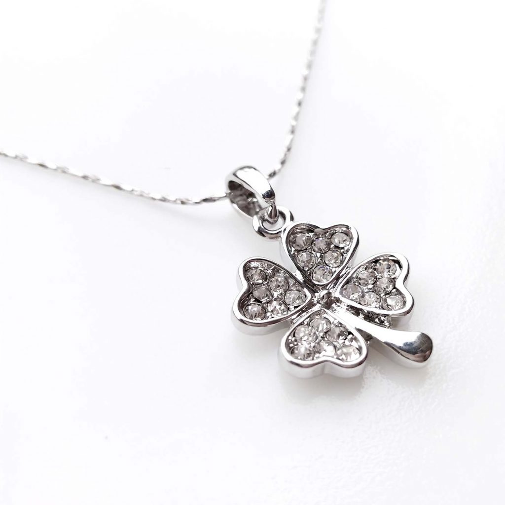 Collana Placcato Oro Bianco 18K con Zirconi ☆ L'Emblema della Fortuna ricoperto di Scintillio ☆