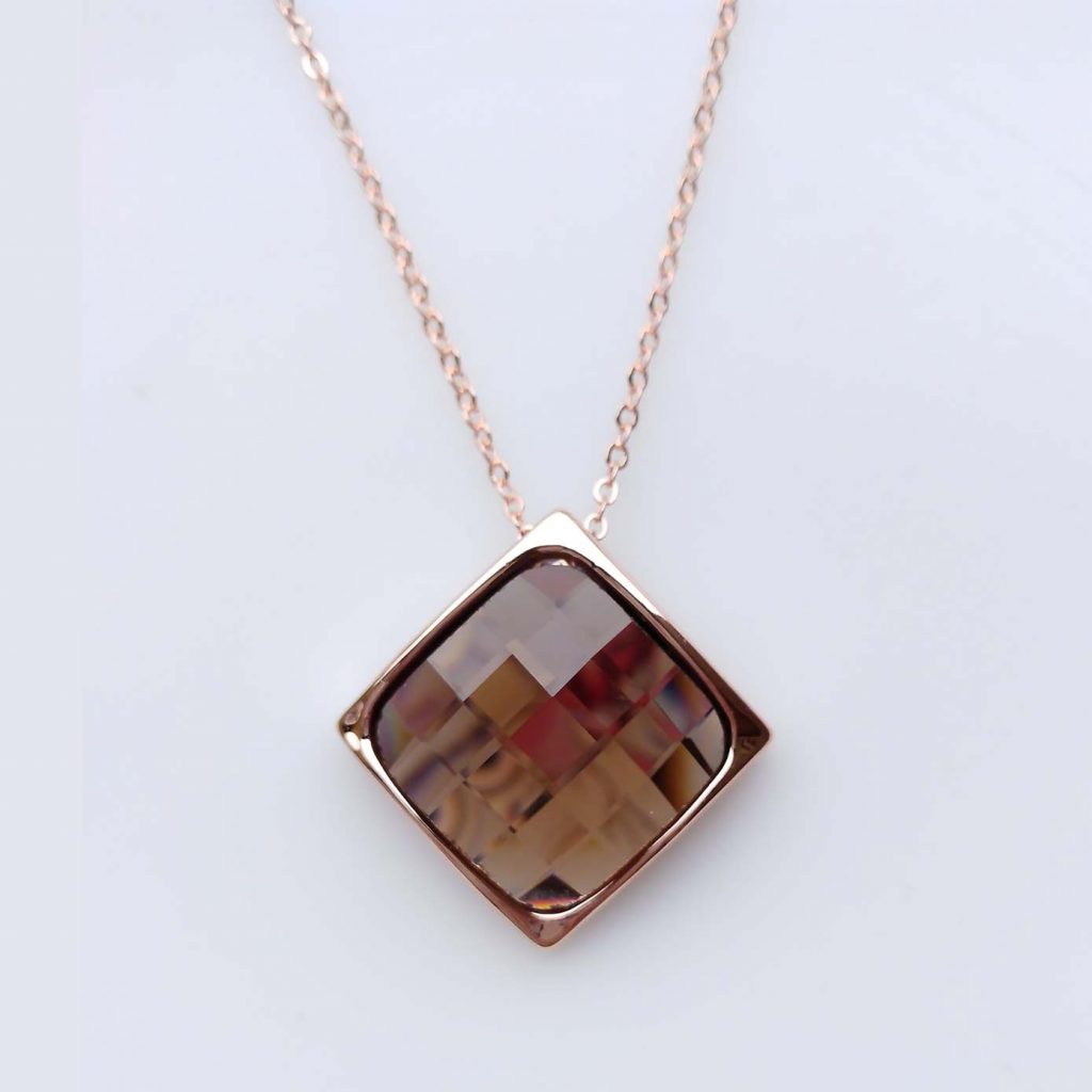 Collana Placcato Oro Rosa 18k con Cristallo di Boemia § Lusso & Eleganza § ARTICOLO ANALLERGICO, SENZA NICHEL, SENZA PIOMBO.