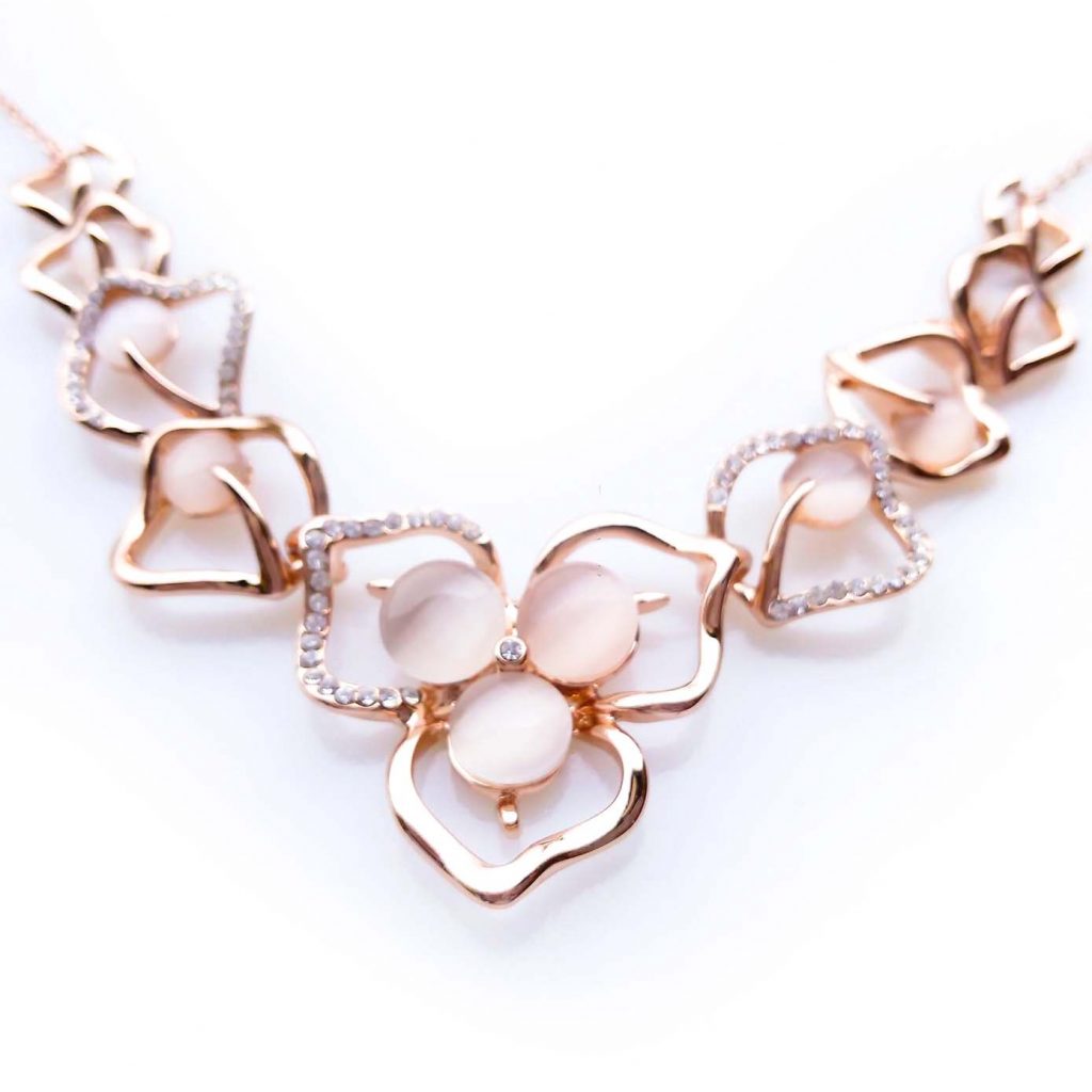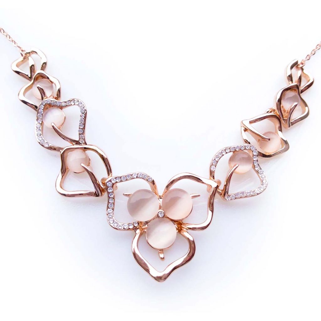 Collier Placcato Oro Rosa 18K con Zirconi e Perle Sintetiche § Elegante & Raffinato per una Donna di Classe! §