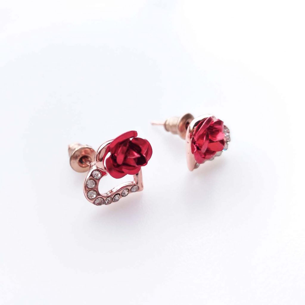 Orecchini Placcato Oro Rosa 18k con Zirconi e Rosa in Resina Passione Pura in questi Orecchini dallo stile Flamenco... Olé!