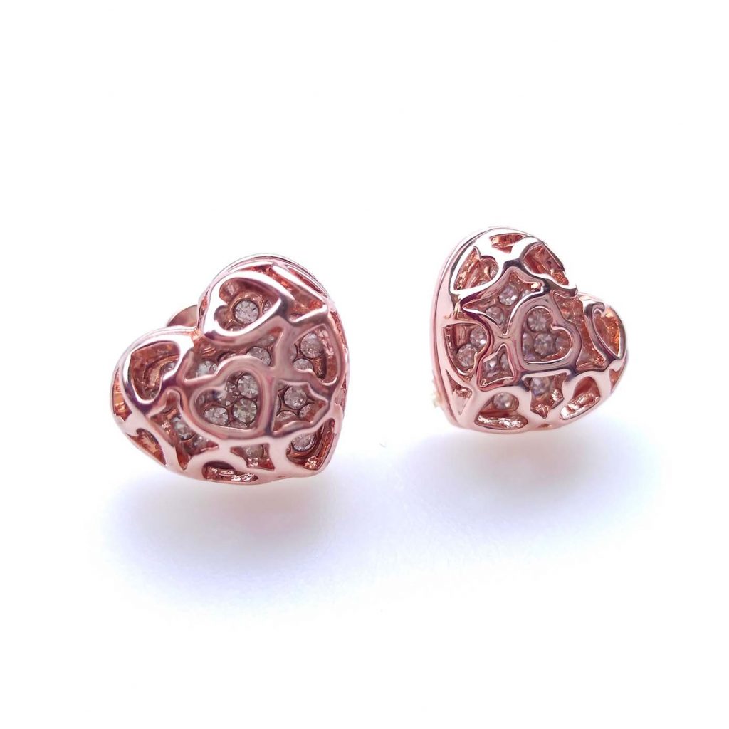 Orecchini Cuore Bagnati in Oro Rosa 18k con piccoli zirconi luminosi. ♡ Due Cuori battono all'Unisono per circondarti di Amore♡