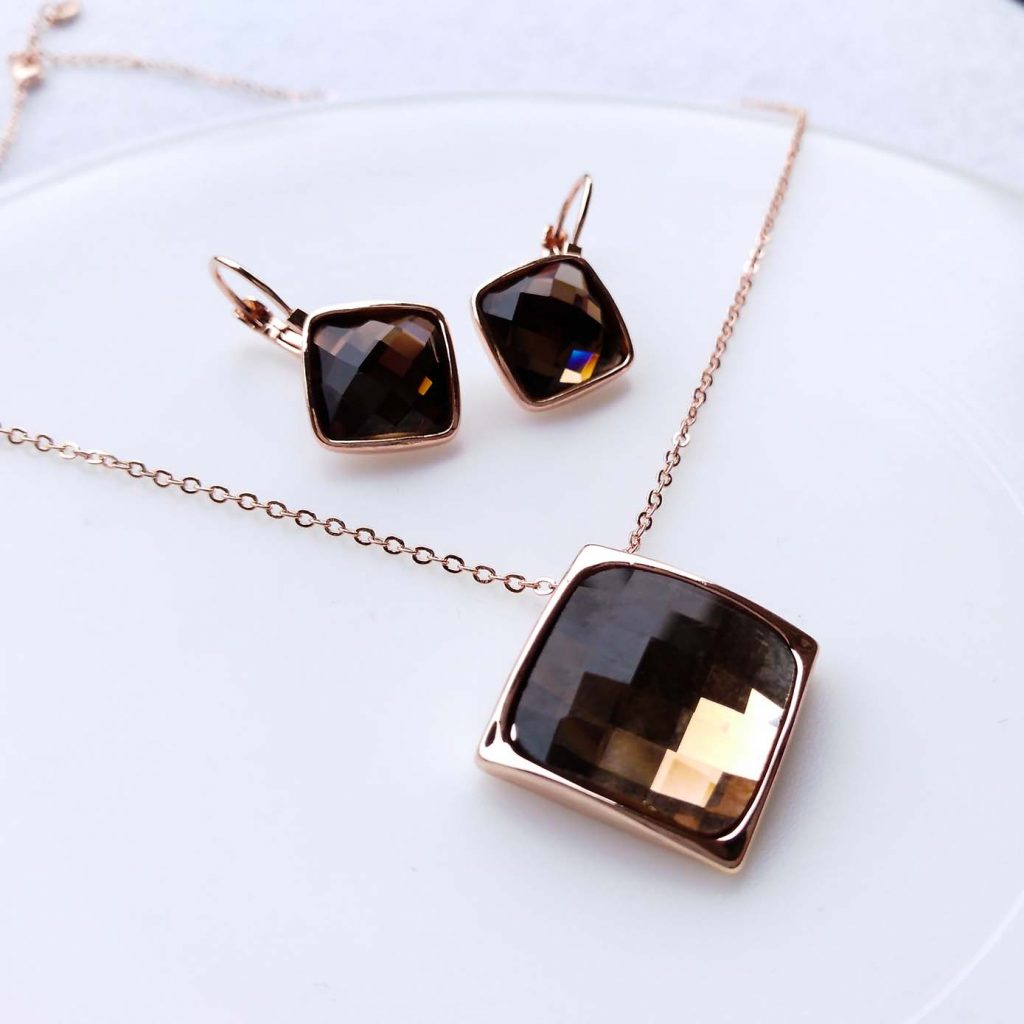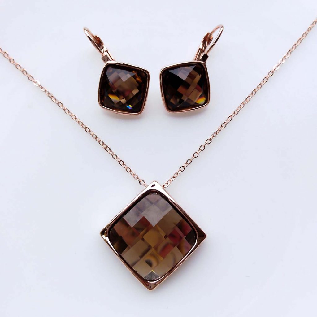 Collana Placcato Oro Rosa 18k con Cristallo di Boemia § Lusso & Eleganza § ARTICOLO ANALLERGICO, SENZA NICHEL, SENZA PIOMBO.